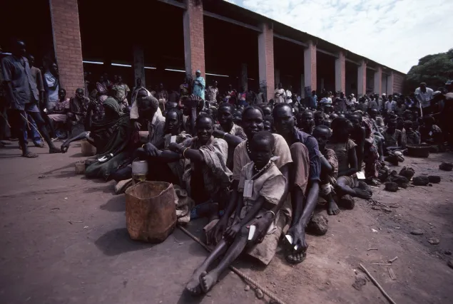 Хартум, Южный Судан. Жители ожидают раздачу еды