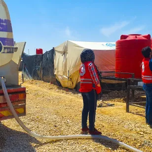 Мы предоставляем временные убежища, а также создаем и восстанавливаем пункты распределения воды в лагерях для перемещенных лиц в поселениях на маршрутах миграции и для людей в осажденных поселениях.