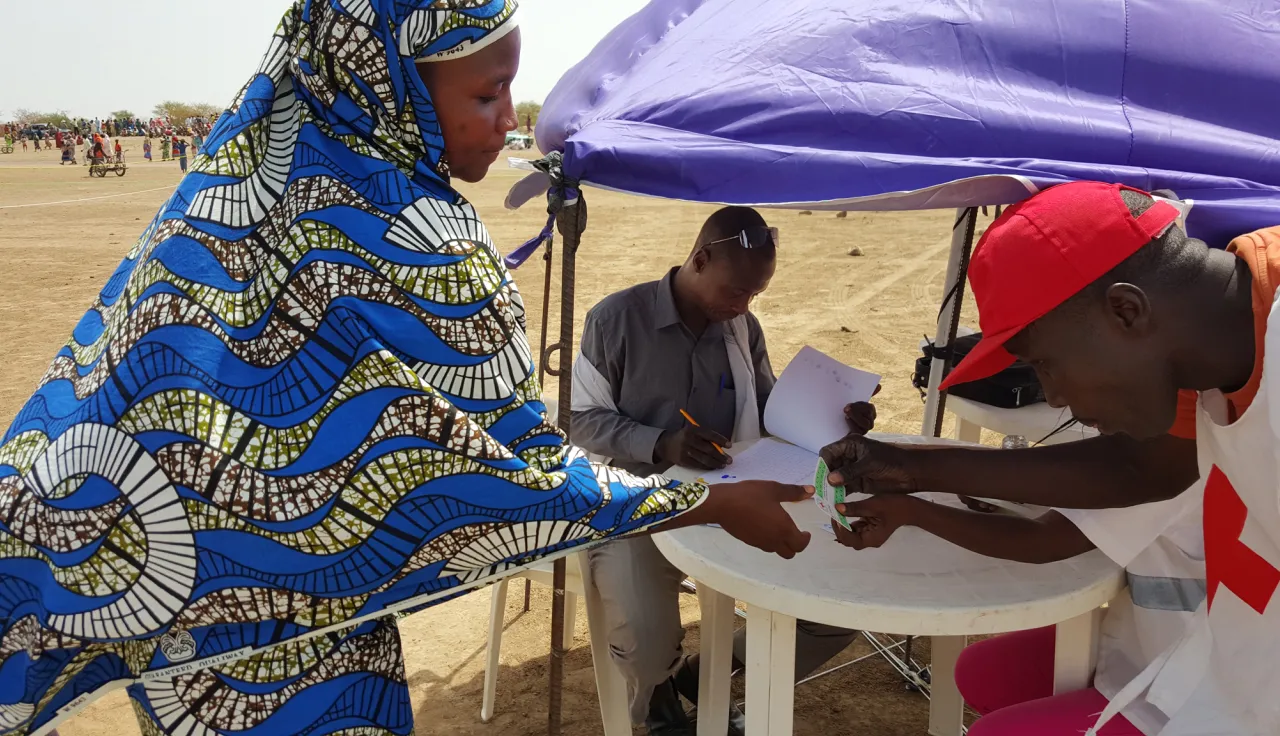 红十字国际委员会总共给超过3.5万名流离失所者和8200名当地居民派发了食品,这些人分别来自洛贡-查里(Logone-et-Chari)州的4个城镇村落,其中包括马尔塔姆。几天后,他们还收到了塑料布、床垫、炊具、毛毯和女性卫生用品包。