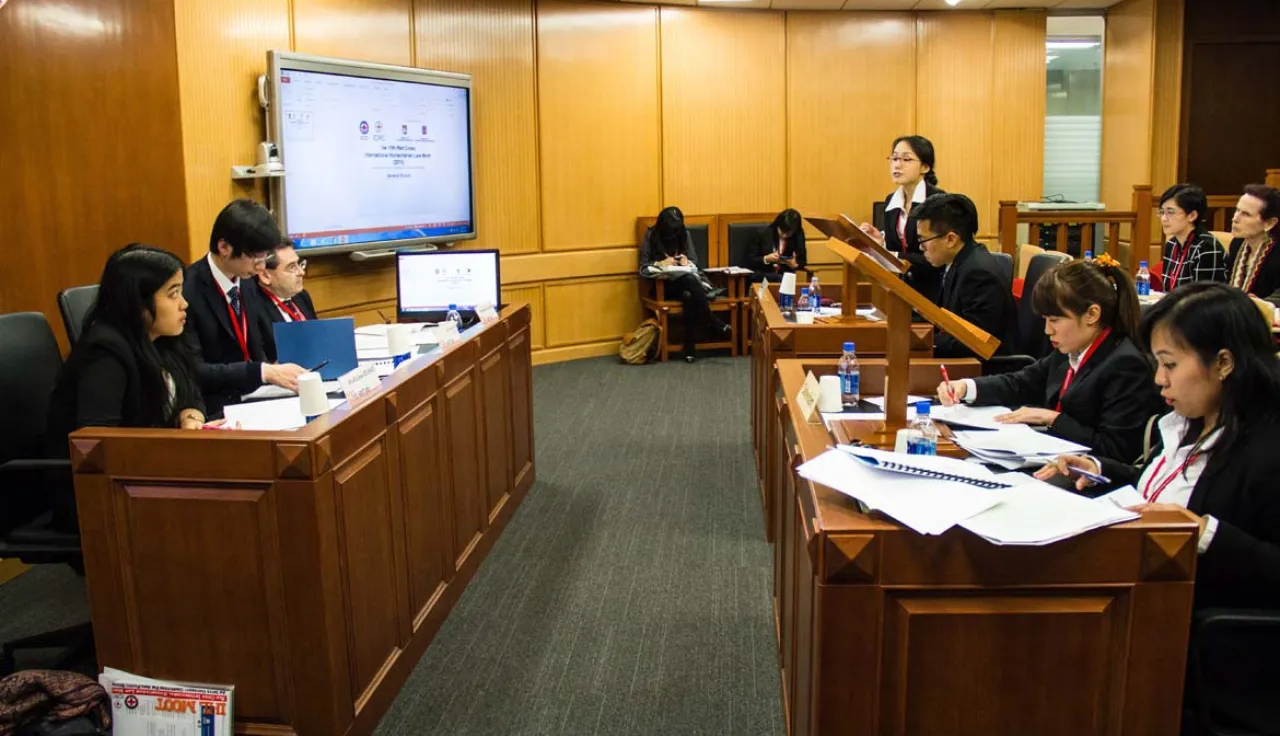 为推动国际人道法纳入高校课程并培养学生对国际人道法的兴趣,自2007年始,红十字国际委员会与多所高校合作举办国际人道法模拟法庭竞赛,包括人民大学、武汉大学、复旦大学、吉林大学、厦门大学等。近年来每年有来自全国的约30所高校参赛。比赛法官由国内外法律专家担任。历届比赛信息参见红十字国际委员会中文网站.