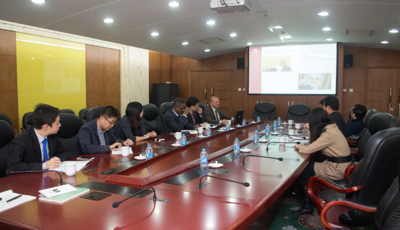 中国现代国际关系研究院南亚东南亚及大洋洲研究所所长胡仕胜先生对红十字国际委员会一行的来访表示欢迎。CC BY-NC-ND / ICRC / Yinan SUN