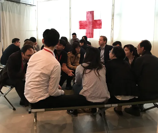 比赛期间,参赛选手还前往位于香港红十字会总部七层的人道教育中心,体验“战区90”项目。