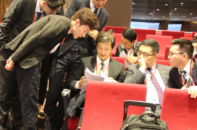 初赛结果发布后,蒙古国立大学的选手们在认真查看初赛分数。他们最终获得控方诉状第三名的奖项。