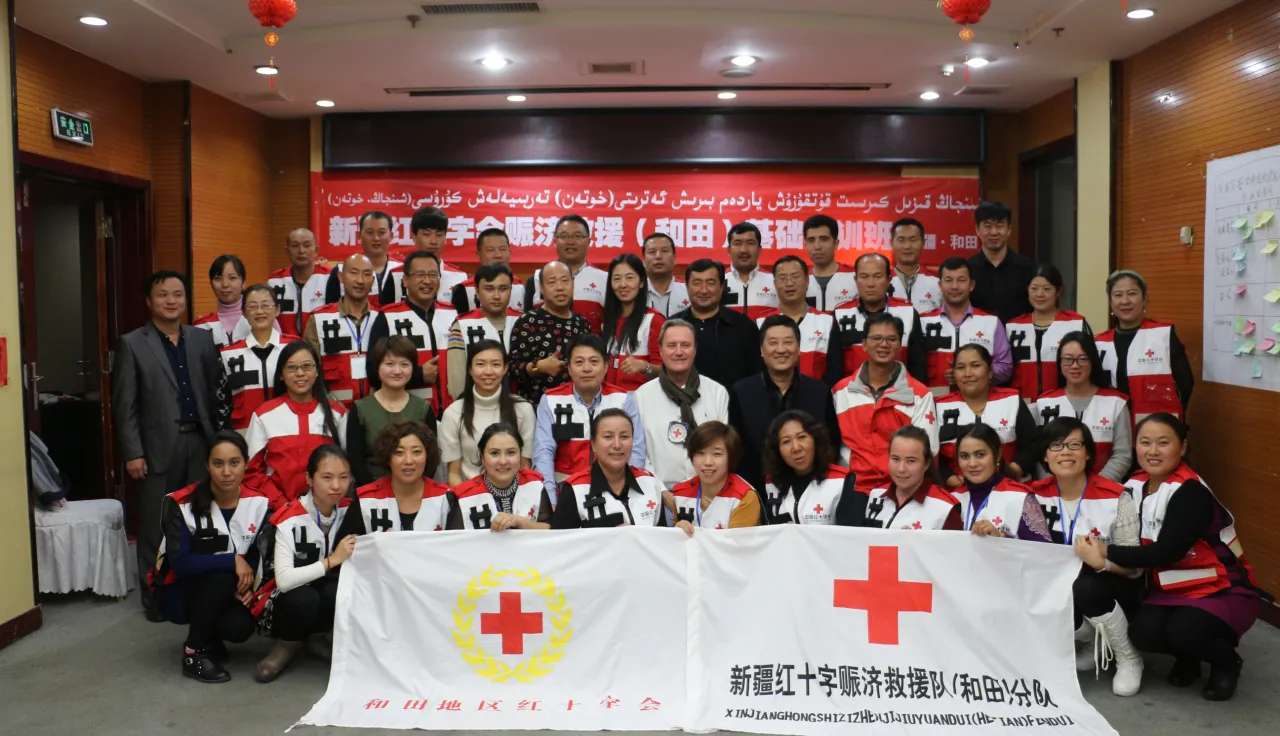 2016年11月14 -18日,由中国红十字会总会、红十字国际委员会和新疆维吾尔自治区红十字会共同举办的新疆地州级赈济救援队基础培训班在和田地区举行。