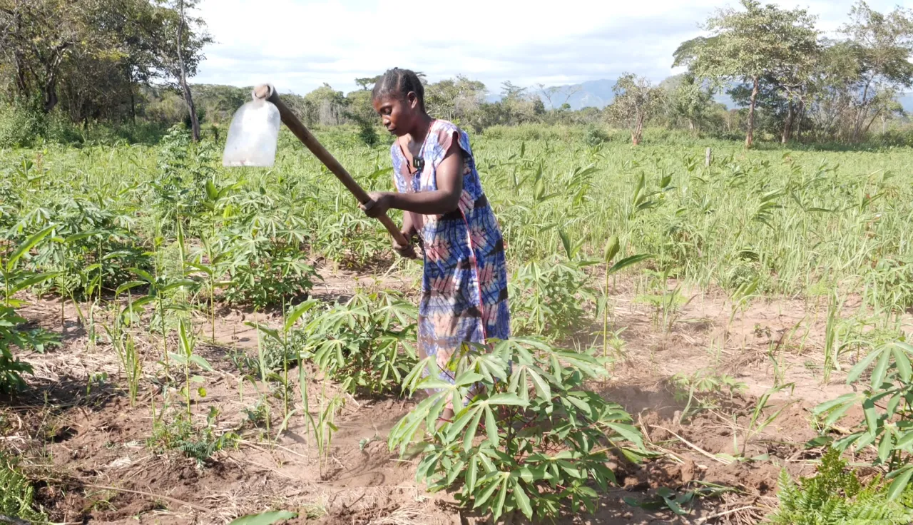 阿卜达拉·基辛巴(Abdala Kisimba)是其中一个协会的主席。他站在离木屋只有几米远的地方,眺望着一公顷新种的木薯田,自豪地看着木薯幼苗在风中摇曳。新的木薯苗不到一米高,但叶子已经生机勃勃,绿意盎然。阿卜达拉很高兴,因为这表示庄稼很健康,没有出现花叶病导致的黄色斑点或马赛克图案。