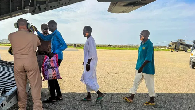 自战斗爆发以来,苏丹境内已有数千人流离失所,另有数万人在南苏丹、埃塞俄比亚、埃及、乍得和中非共和国等邻国避难。在下图中,患者正在登机,红十字国际委员会航班负责将遭受战伤的平民从苏丹乍得边境的阿德雷送往恩贾梅纳。需要接受颌面外科和神经外科手术的患者在经历了数天的焦虑不安之后终于能够获得治疗了。