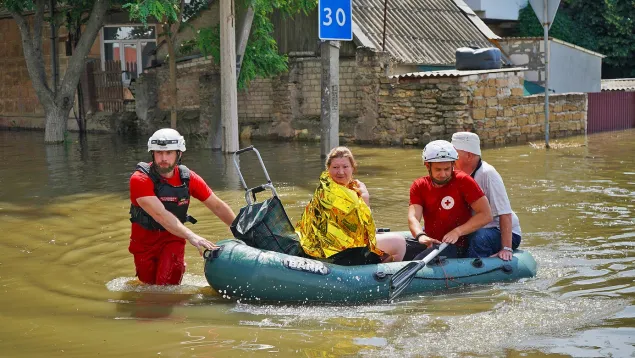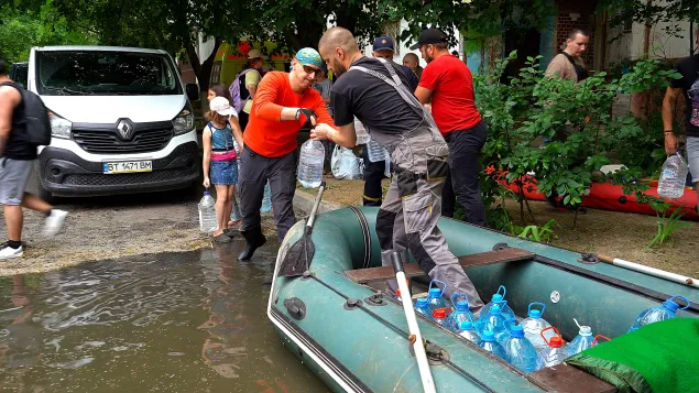 从洪灾发生第一天起,我们就一直与乌克兰红十字会和有关当局携手合作,满足新出现的需求,尤其关注洁净水的获取和地雷风险问题。我们提供的紧急援助包括数吨氯溶液、大容量水泵和水箱、数千个塑料桶以及食品和医疗用品。