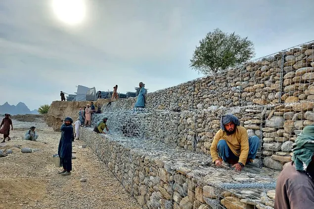 阿富汗法拉省古利斯坦。通过实施以工代赈项目,修复社区的灌溉渠,保护农田免受洪水侵袭。