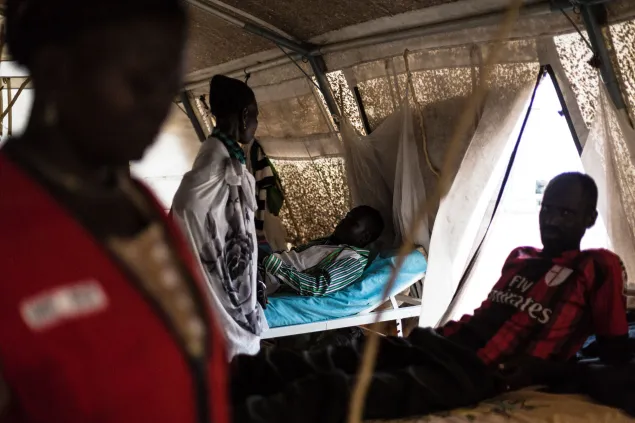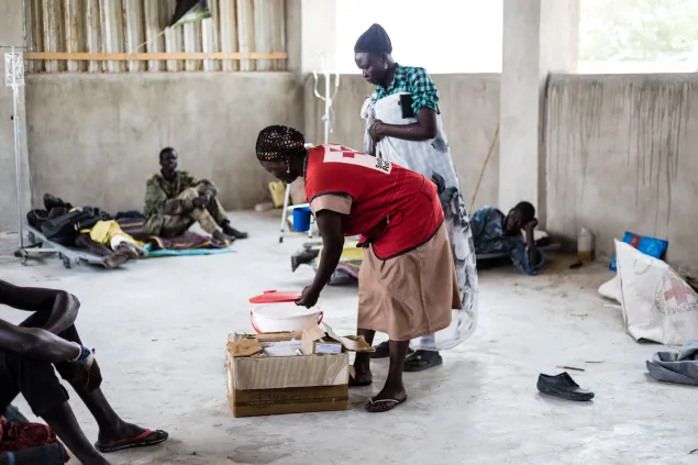 当地医务人员和南苏丹红十字会志愿者们花了大量时间照顾这些伤者。