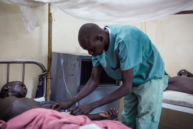随着上尼罗地区战事愈演愈烈,科多克医院的红十字国际委员会外科医疗队夜以继日地开展工作。