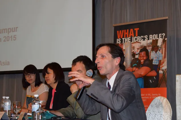 红十字国际委员会东亚地区代表处法律顾问理查德·德加涅先生正在发言。