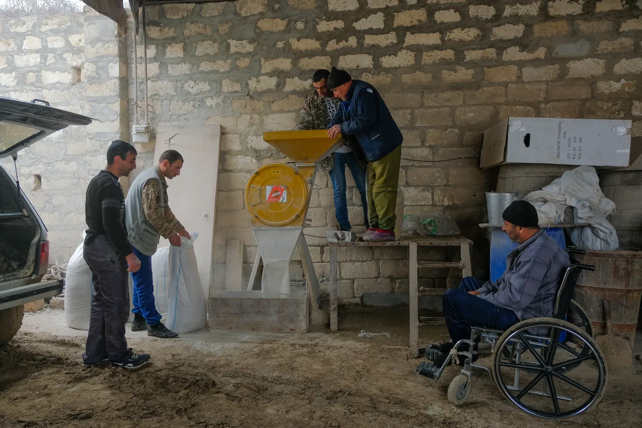 他购买了一台牛饲料研磨机,调整至适合轮椅的高度,开始为村民提供服务。有了这份工作以及来自家人,尤其是他两岁女儿的支持,每天的生活似乎不再那么艰难。