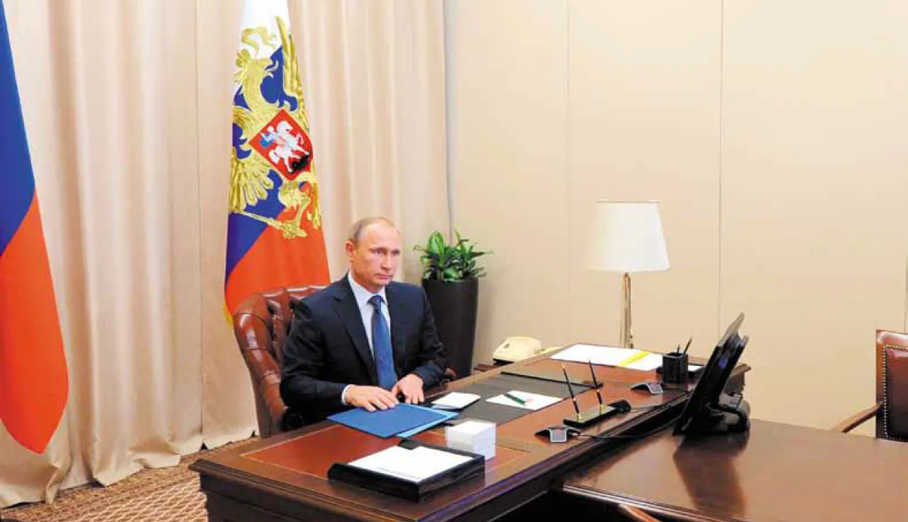 普京身着一身黑色西装坐在俄罗斯国家国防控制中心指挥台的正中央。身旁围坐着一排戎装在身的俄国军人。通过麦克风,他自信而从容地对着数千公里外叙利亚海岸的"莫斯科"号导弹巡洋舰下达命令:"以一艘航母为首的法国海军战斗群将要抵达你部战区。你部必须与法方建立直接联系,把他们当作盟军一样开展合作。"