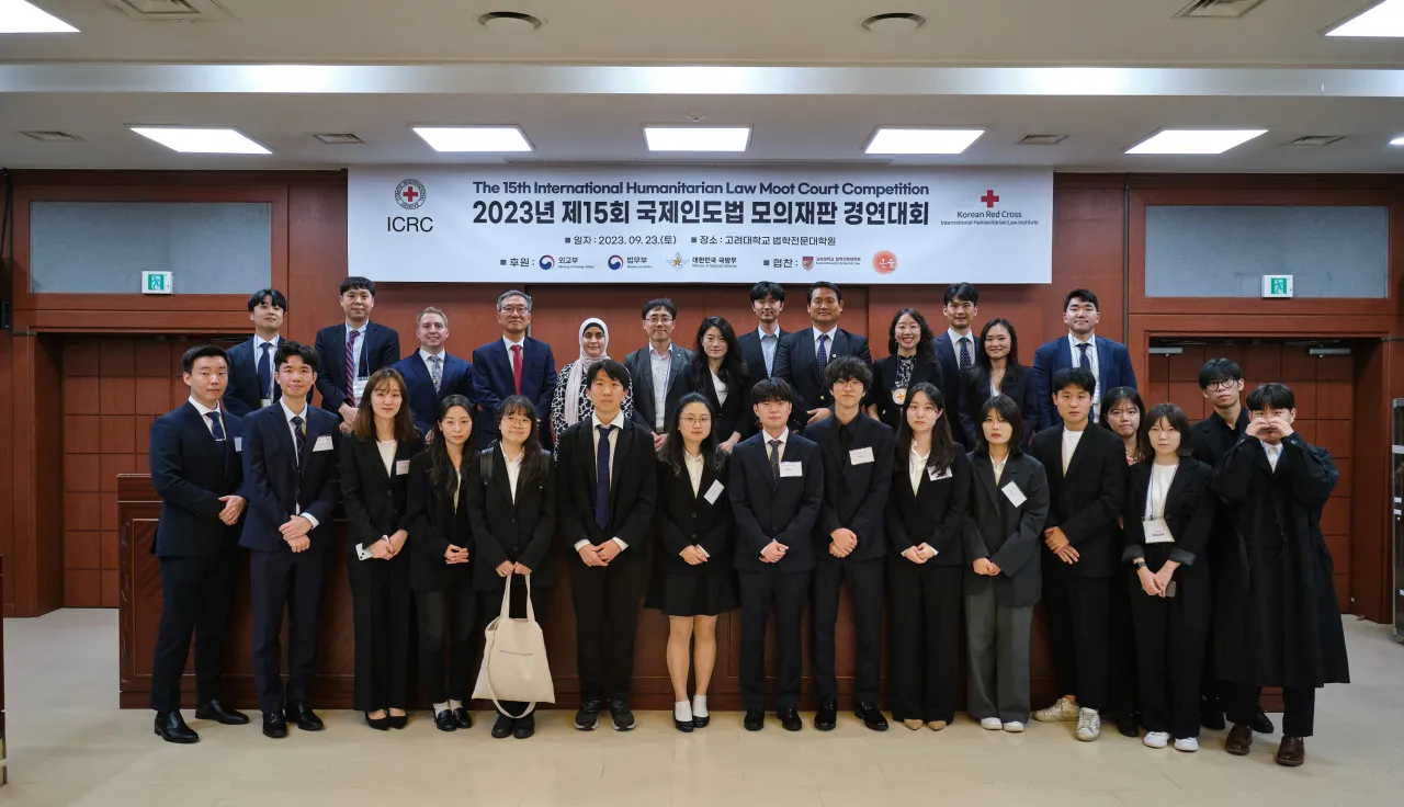 2023 年 9 月 23 日,红十字国际委员会驻首尔任务团和韩国红十字会在韩国首尔联合举办了第 15 届国际人道法模拟法庭竞赛。该活动由韩国外交部、司法部、国防部、高丽大学法学院和公益组织温律(Onyul)赞助。