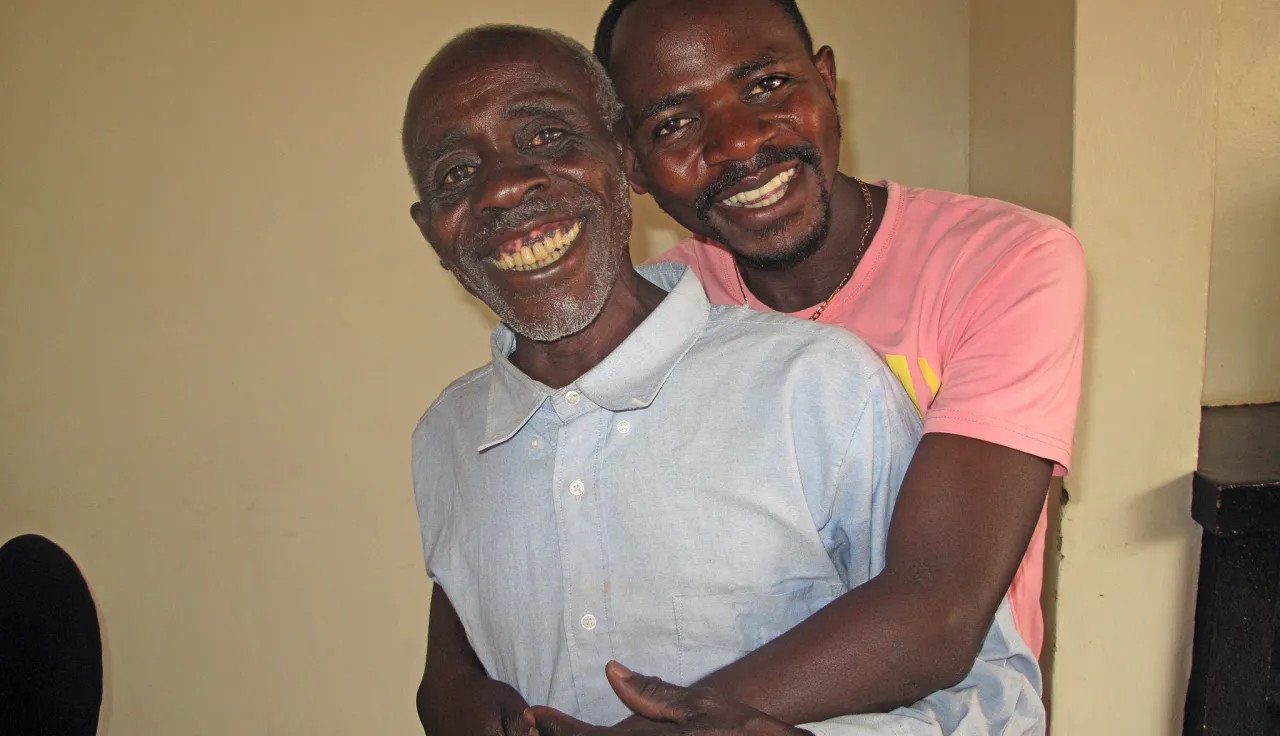 卢旺达。雷蒙德·恩根达希马纳拥抱他22年未见的父亲,之前他一直通过红十字国际委员会寻找父亲。 CC BY-NC-ND / ICRC / Emmanuel Nyandwi