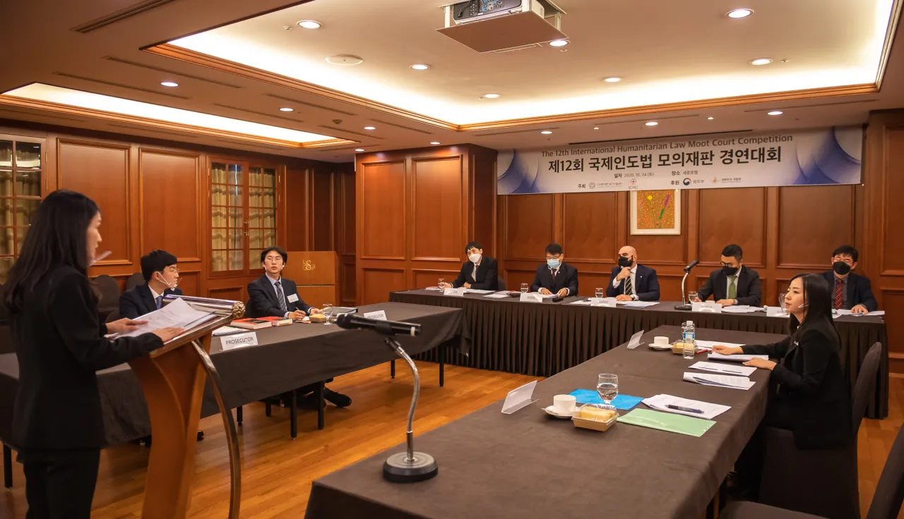 2020年10月24日,红十字国际委员会首尔任务团与韩国律师协会合作,在韩国合作举办了第十二届国际人道法模拟法庭竞赛的决赛。
