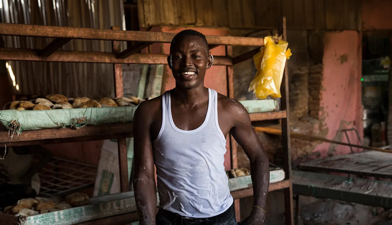 喀土穆郊外,法里斯工作的面包房新鲜出炉的苏丹面包。法里斯几乎整天都站着,和面、揉面、擀面。下班后,他会立即去镇上参加一些培训与课程。Photo: Crystal Wells / ICRC