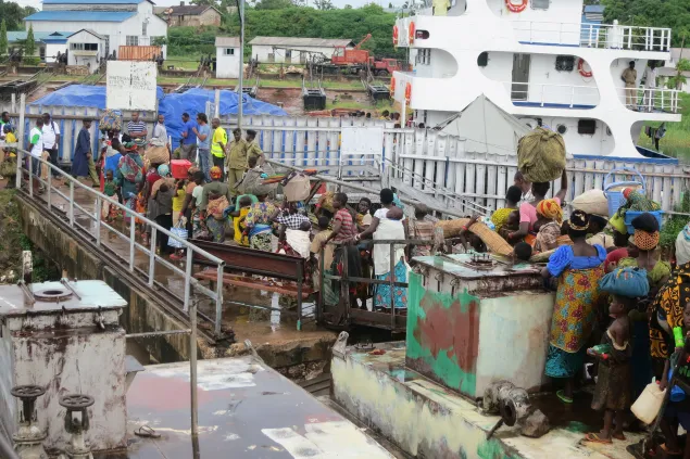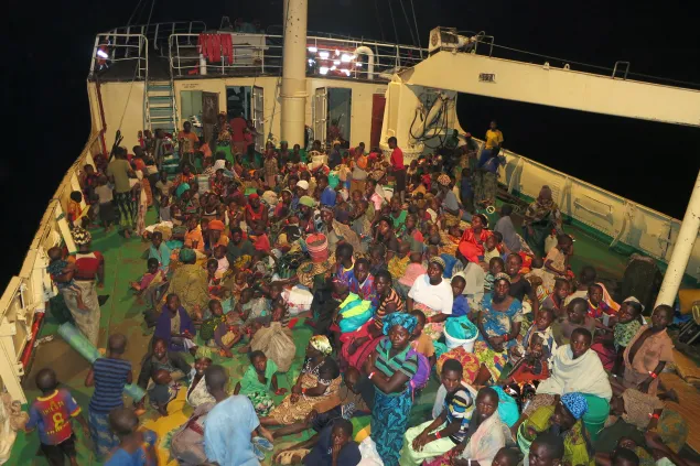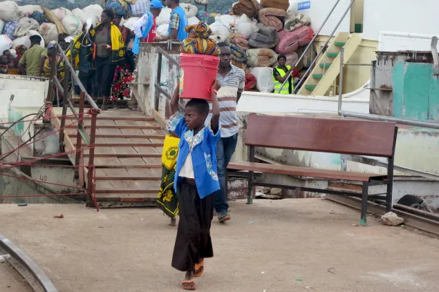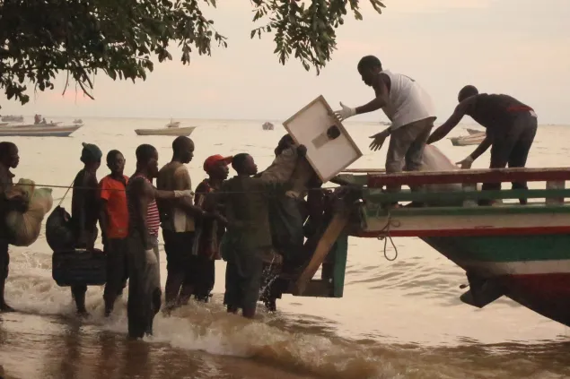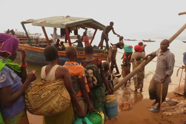 妇女和儿童乘坐单独的船摆渡,之后被安排在大船上与男人隔开的不同区域。由于坦噶尼喀湖涨水,停靠船只非常困难。然而,每艘船上都配有训练有素的救生员,确保每个人都能安全抵达基戈马。