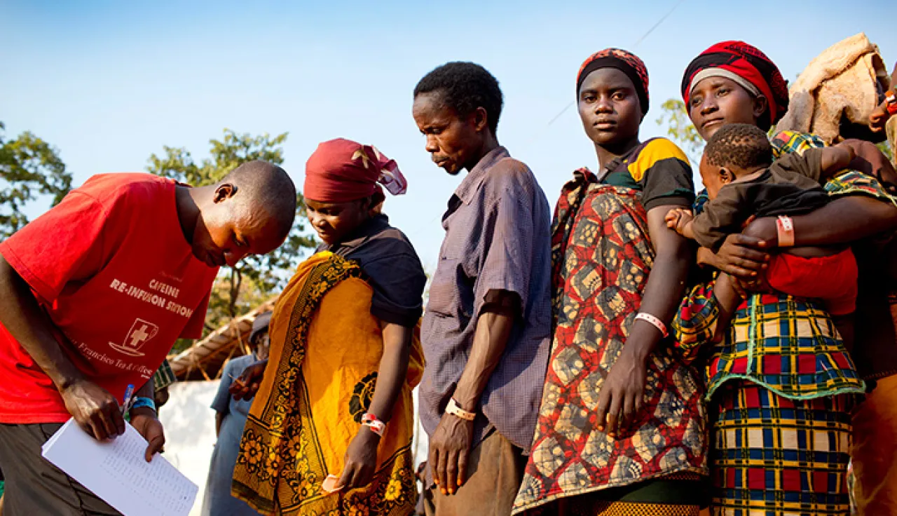在坦桑尼亚迈凯拉的尼亚古如苏难民营,一位妇女和她的孩子向红十字重建家庭联系处登记失踪的家属。 CC BY-NC-ND / ICRC / Kate Holt